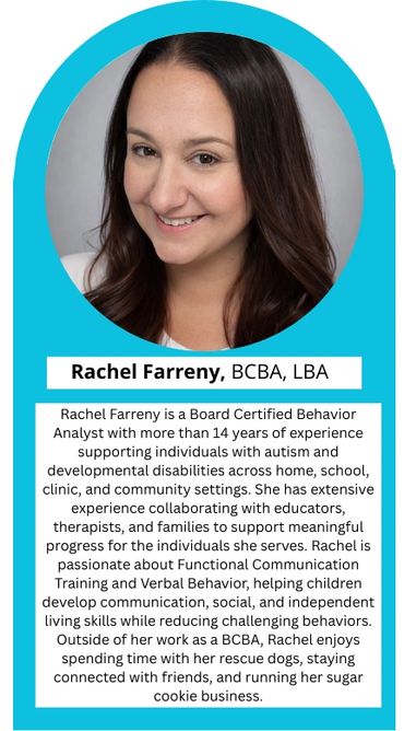 A Registered Behavior Technician (RBT) is a paraprofessional who works directly with your child under the supervision of a BCBA.